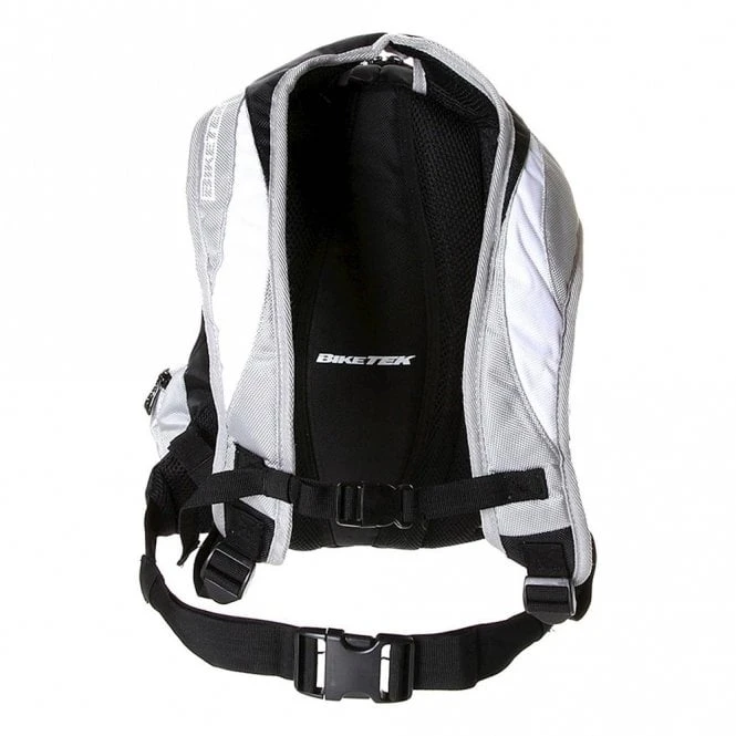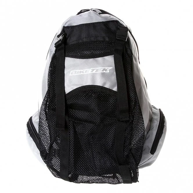 Comfortably and efficiently carry your gear on your bike with this hardwearing backpack from BikeTek. Padded shoulder straps keep even heavy loads comfortable while the adjustable waist belt stops the bag from moving around. Main compartment can hold food, clothes etc. and there are two external zipped pockets for smaller items like keys and cash.