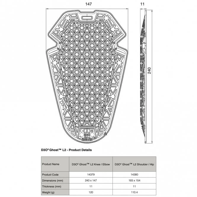 D3O’s thinnest and most flexible armour range to date, meets CE Level 2 testing.