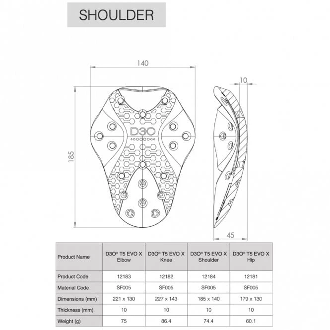 The D3O® T5 Evo X limb protector range utilises the latest material innovation from D3O® which offers increased durability.