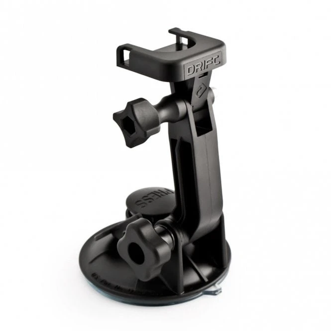 Drift’s powerful suction cup is the perfect accessory for mounting you Drift camera to any non-porous flat surfaces. Perfect for use on car windshield’s or car body. This well designed mount makes it simple to turn, tilt, and rotate your video camera 360°. A newly designed suction mount specifically made for all current and previous model Drift cameras. This rugged, industrial strength mount is perfect for attaching Drift cameras to a car, windscreen, motorbike or snowmobile. The durable polymer composition combined with the addition of the new, ratcheted washer the Drift Suction Cup Mount will securely lock your camera in a set position, even under extreme conditions. This new design focused on reducing the weight of the mount by over 50% to its predecessor ensuring that it keeps vibrations to a minimum at high speeds. Making use of the rotating lens and rotating universal clip that are a signature of Drift cameras, the Suction Cup Mount can now be set up to an even lower profile allowing for that perfect shot. This new design also keeps the amount of parts needed to an absolute minimum.