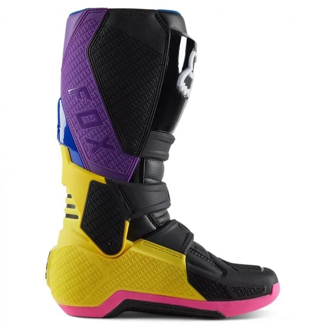 Included as part of the all-new design of the Motion Boots is the updated buckle and closure system. This 4-buckle design features new, patented forged metal buckles. This system provides a durable, secure closure for a precise fit and includes extended-length levers for easy opening and closing. The new ball and socket mechanism ensures your mobility is never compromised with this system, providing “float” as the boots flex and contract while you ride. This buckle and closure system is the same across all Fox boots, but Motion Boots are designed with forged metal buckles for increased durability.