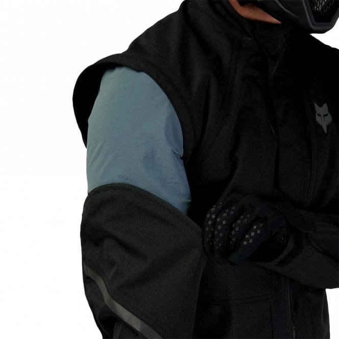 - Removable sleeve system allows jacket to be converted into a vest (sleeves can be stored in rear pocket)