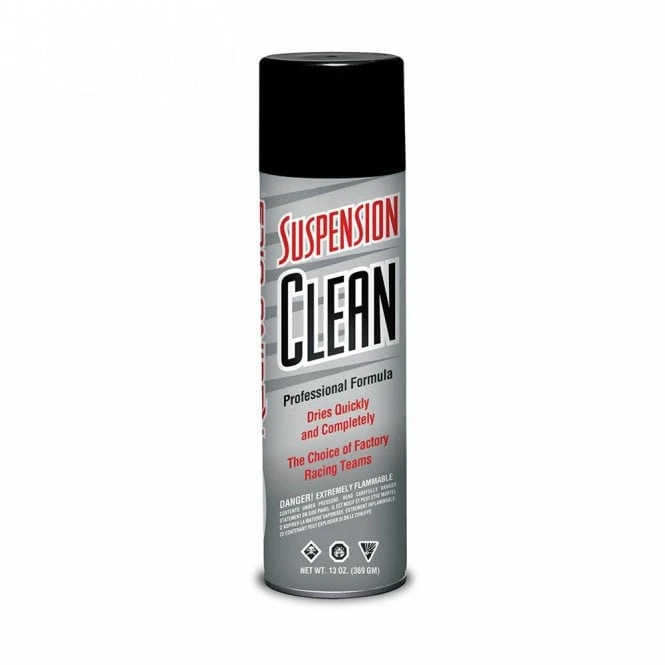 Maxima Suspension Clean is specifically formulated for the Powersports industry professional. Suspension Clean’s unique formula quickly and easily cleans suspension internally and externally leaving a dry, residue free surface. Professional formula integrates strong industrial cleaners with a powerful spray. Overspray will not harm o-rings or most seal materials. Displaces moisture.