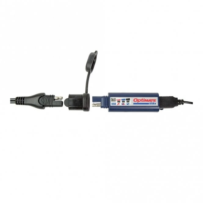 OptiMate USB charger. Powerful, safe USB charger to charge USB compatible devices – e.g. mobile phones, navigation devices, MP3 players, intercoms, iPhone, iPad, digital cameras and many others. Use devices while using your car or bike, or recharge while stationary. The O100 will turn off if the battery is low, preventing accidental battery discharge.