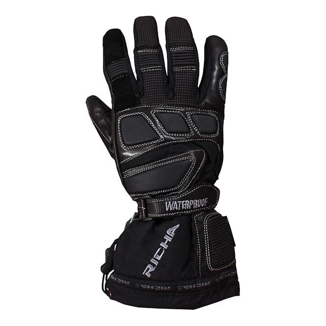 Full winter waterproof glove with textile and leather construction.