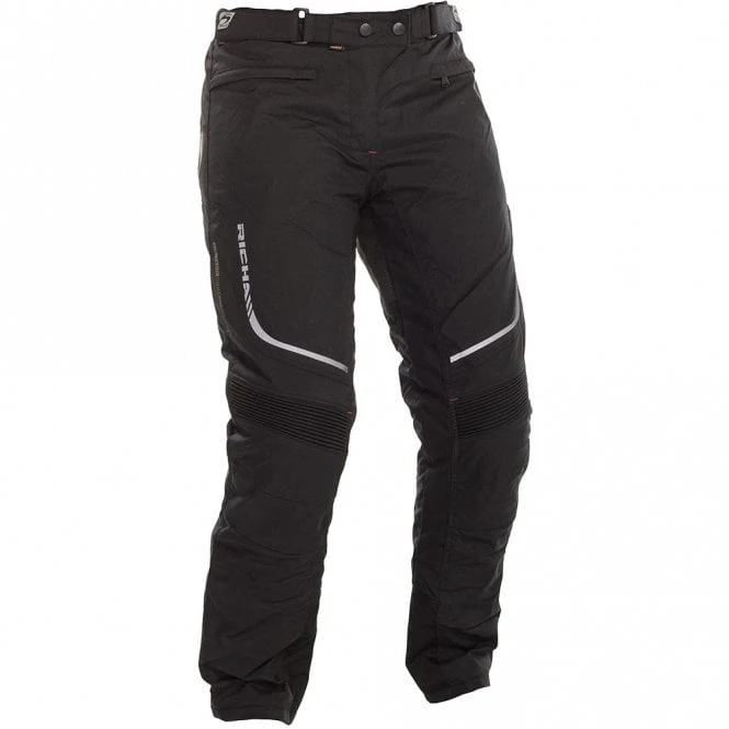 High density ladies textile motorcycle trousers with a fixed waterproof membrane and removable thermal liner. CE approved D3O knee protectors are fitted as standard.