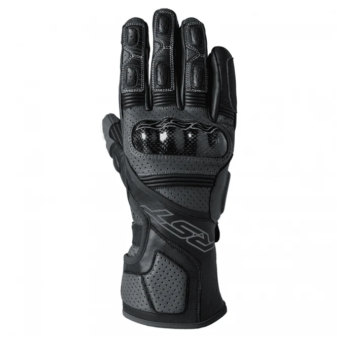 The Fulcrum is RST’s brand-new sports glove designed with an acknowledgement to street riding. Featuring carbon fibre knuckle protectors, out-stitched pre-curved fingers, digital touch leather on both the thumb and forefinger, double layer leather on the palm and power grip for additional grip on the handlebars. The Fulcrum is also available in a waterproof version.