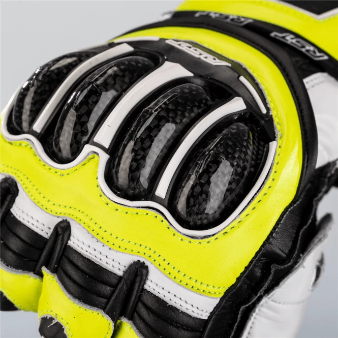 Made with both full-grain cowhide and kangaroo leather, the glove features a CE Level 2 Carbon Knuckle Protector for impact protection. DuPont™ Kevlar® Fibre on the palm stitching and underlay, along with double layer kangaroo leather and an RST palm slider protect the palm in the event of a high speed slide, while the double wrist and cuff closure offer a secure fit. DuPont™ Kevlar® lining throughout the rest of the glove prevents tearing, and elasticated conjoined fingers to prevent “finger roll” without affecting reach or flexibility when changing gear.