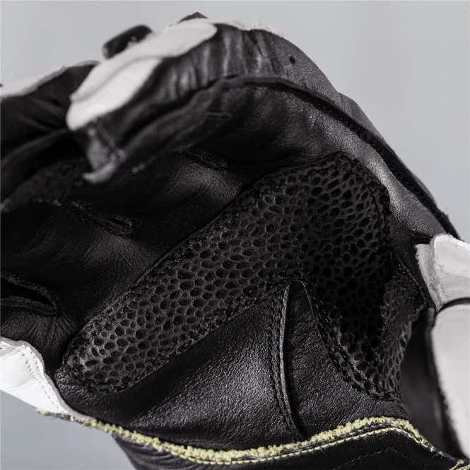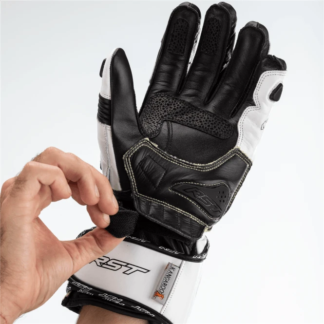 Made with both full-grain cowhide and kangaroo leather, the glove features a CE Level 2 Carbon Knuckle Protector for impact protection. DuPont™ Kevlar® Fibre on the palm stitching and underlay, along with double layer kangaroo leather and an RST palm slider protect the palm in the event of a high speed slide, while the double wrist and cuff closure offer a secure fit. DuPont™ Kevlar® lining throughout the rest of the glove prevents tearing, and elasticated conjoined fingers to prevent “finger roll” without affecting reach or flexibility when changing gear.