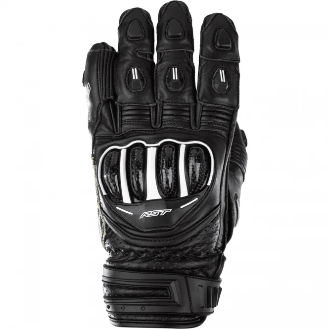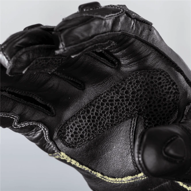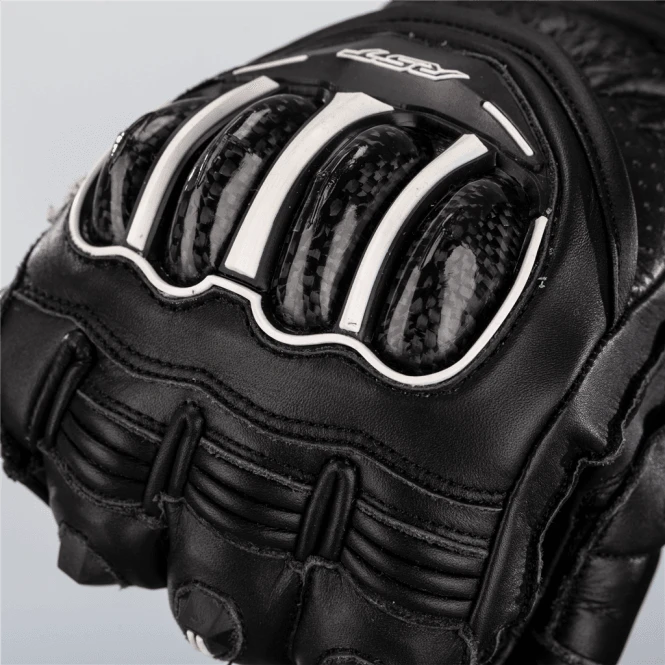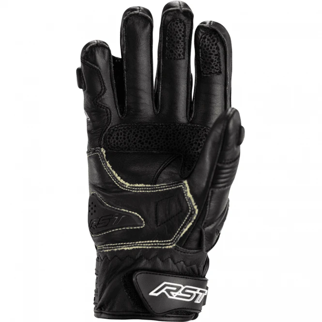Made with both full-grain cowhide and kangaroo leather, the glove features a CE Level 1 Carbon Knuckle Protector for impact protection. DuPont™ Kevlar® Fibre on the palm stitching and underlay, along with double layer kangaroo leather and an RST palm slider protect the palm in the event of a high speed slide. Elasticated conjoined fingers to prevent “finger roll” without affecting reach or flexibility when changing gear and the hook & loop closure offers a secure fit.