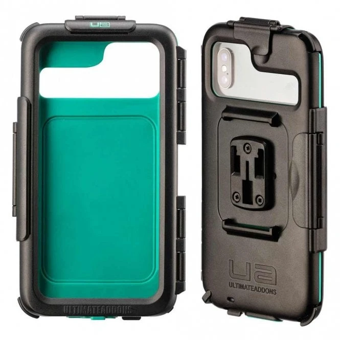Apple iPhone XS Max/11 Max Tough Waterproof Mount Case. The all new design Apple iPhone Xs Max tough mount case by Ultimateaddons. Get the most out of your Apple iPhone Xs Max by safely and securely mounting to your motorcycle. This tough waterproof hard case has specifically been designed to be mounted to motorcycles, this tough case will help keep your iPhone Xs Max protected from the elements, while powering it while you travel.