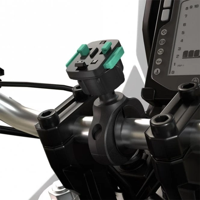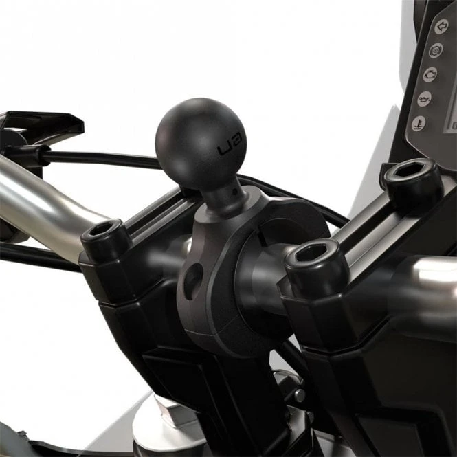 Ultimateaddons new motorcycle handlebar mount with 25mm to 3 prong adapter. This new slimline handlebar attachment comes with 4 spacers making it compatible with a wide range of motorcycles. Whether you want to mount the handlebar attachment in the centre of the bars or out near the controls this one attachment is suitable.